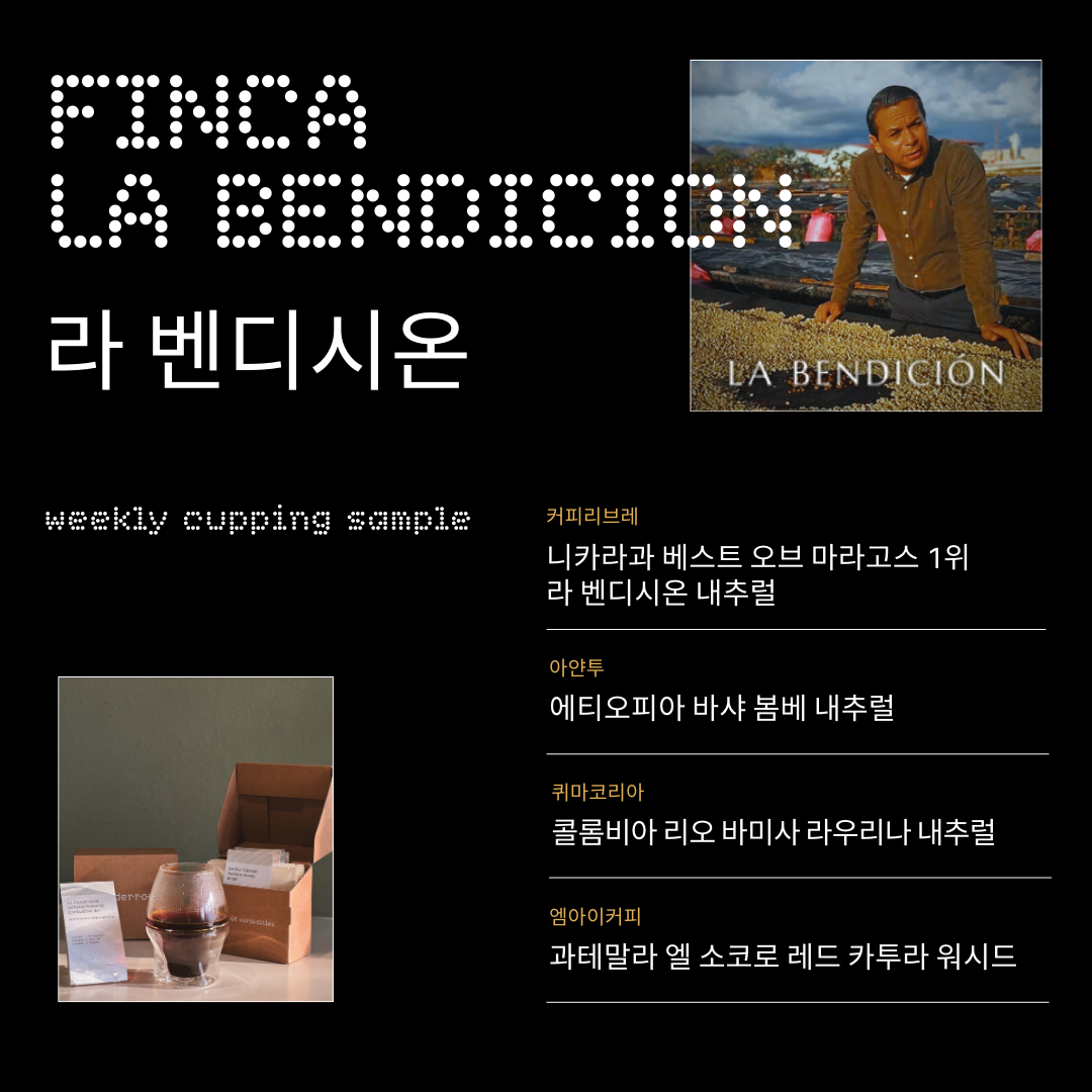 이번 위클리 커핑은 2025 니카라과 베스트 오브 마라고스 옥션에서 1위를 차지한 라 벤디시온 농장의 마라카투라가 준비되었습니다.