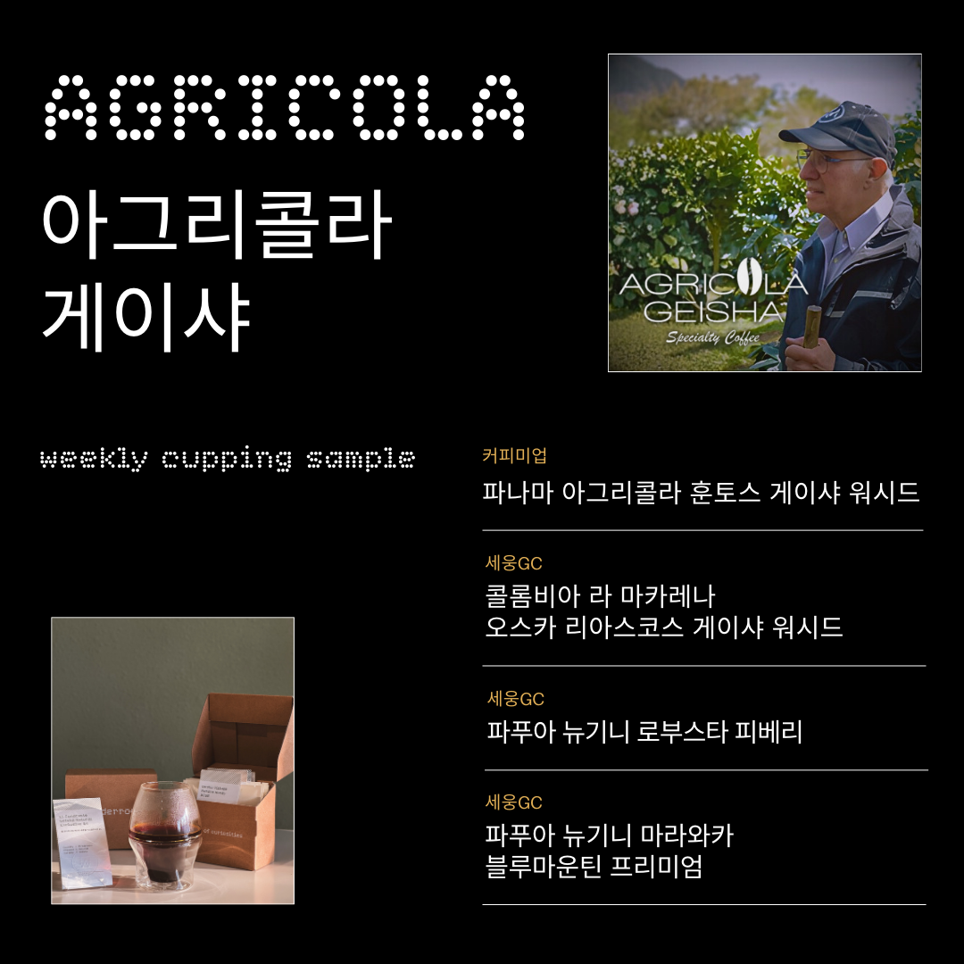 이번 위클리커핑은 살아있는 생태계로 유지될 수 있도록 자연의 리듬을 따라 운영되는 아그리콜라 농장의 열정과 호기심이 담긴 커피가 준비되었습니다.